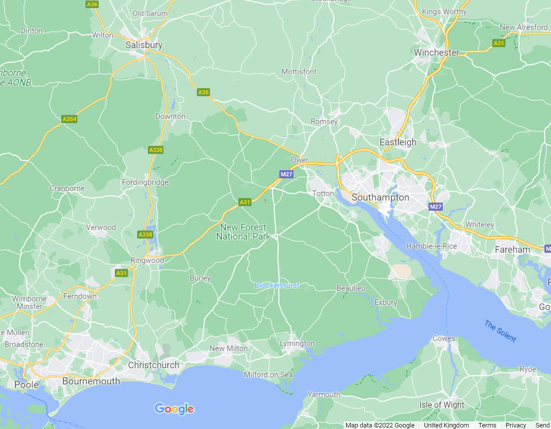 Beaulieu, Brockenhurst, Bournemouth, Burley, Christchurch, Lymington, Lyndhurst, Milford-on-Sea, New Milton, Ringwood, Salisbury and Winchester